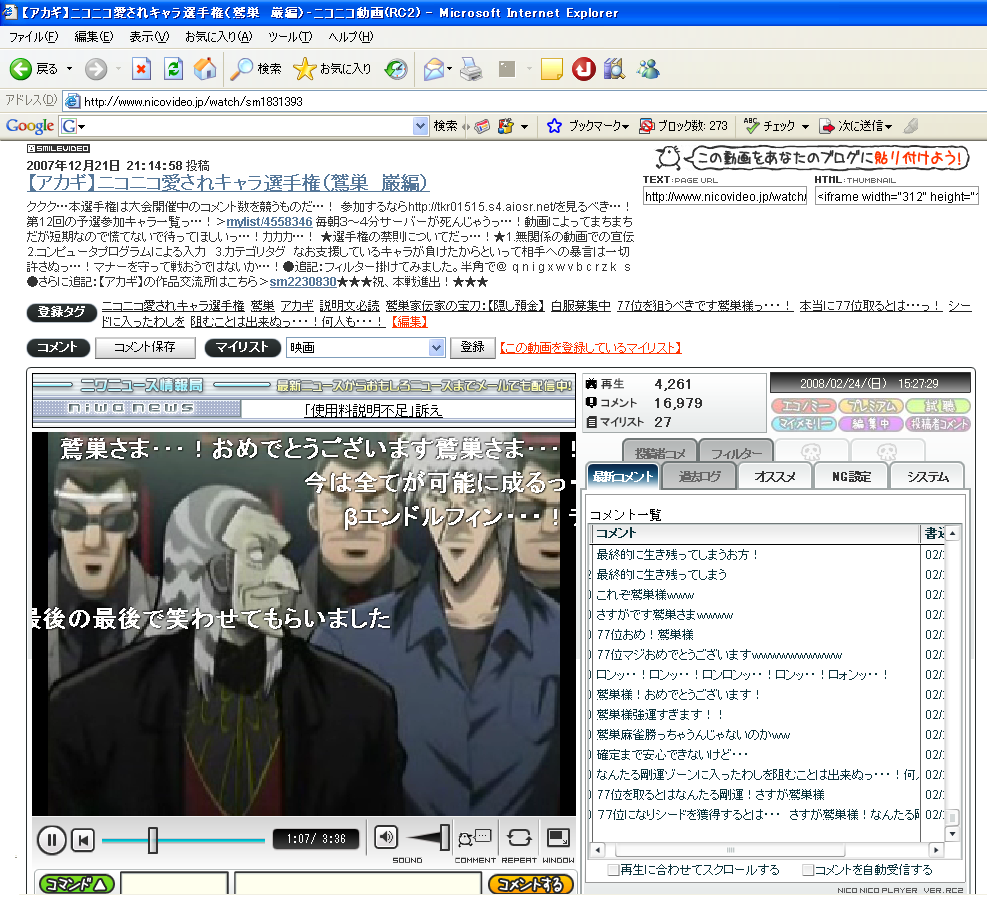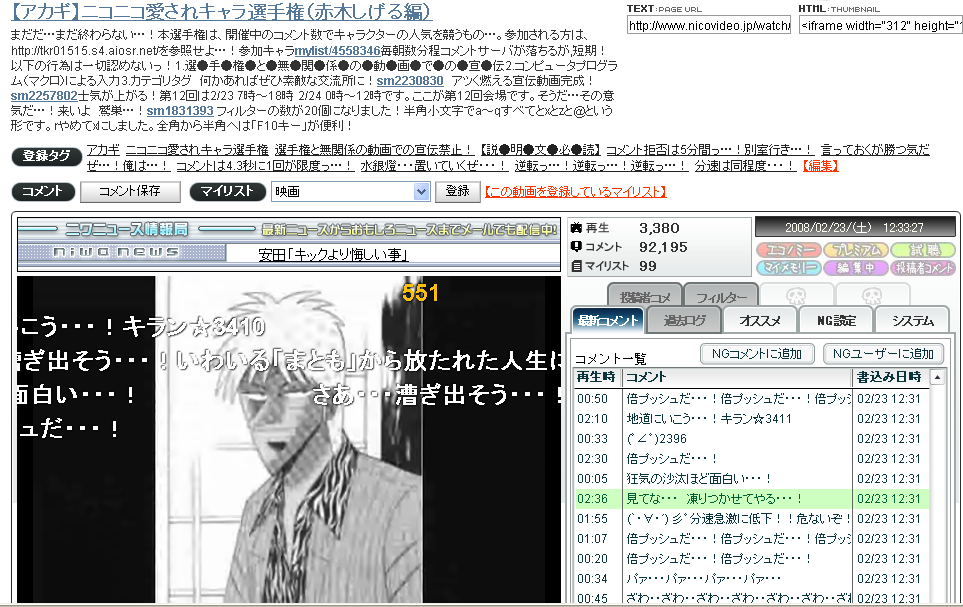 そんなに人気あったとは・・・ニコニコといえばやっぱり「萌え~」とかそんなのだと思ってたのに