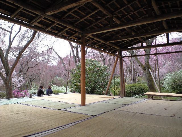 花園的なところ。 実は京都の桜はまだ満開じゃなかったんです。