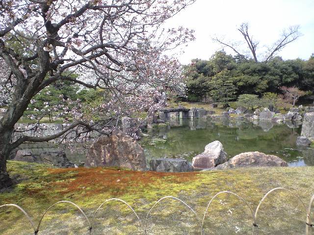 花園的なところ。 実は京都の桜はまだ満開じゃなかったんです。
